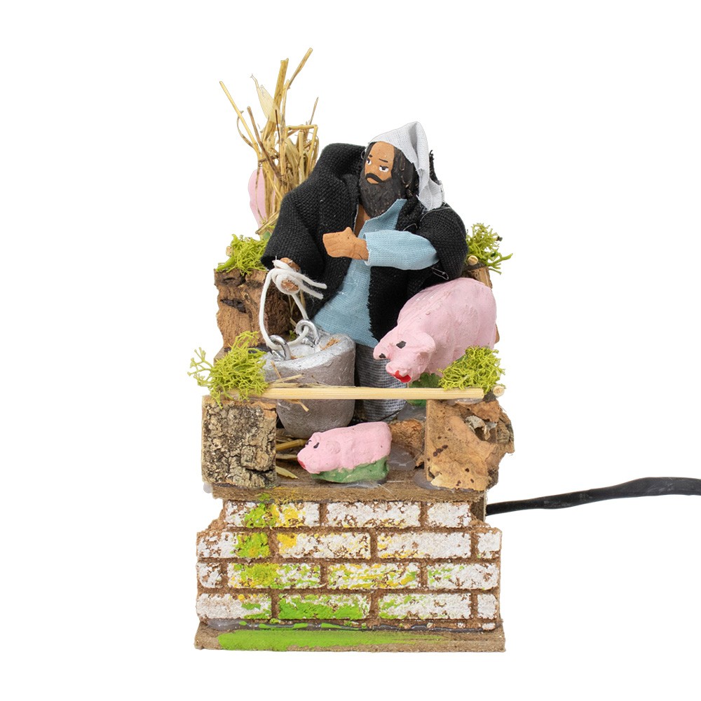Scena pastore in movimento: Allevatore di maiali per presepe in movimento, dimensioni 10x15x15 cm.