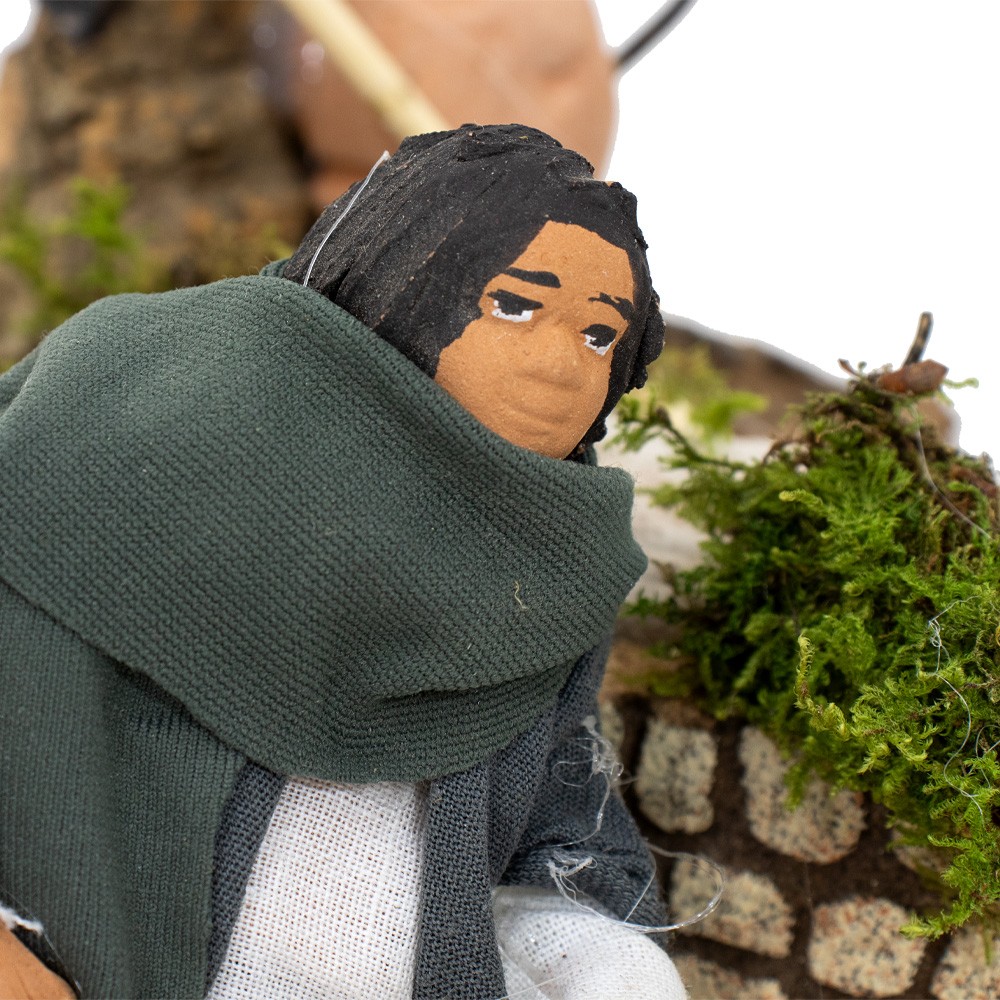 La statuetta è in terracotta con abiti in tessuto ed è proporzionata per il presepe di 8 cm.