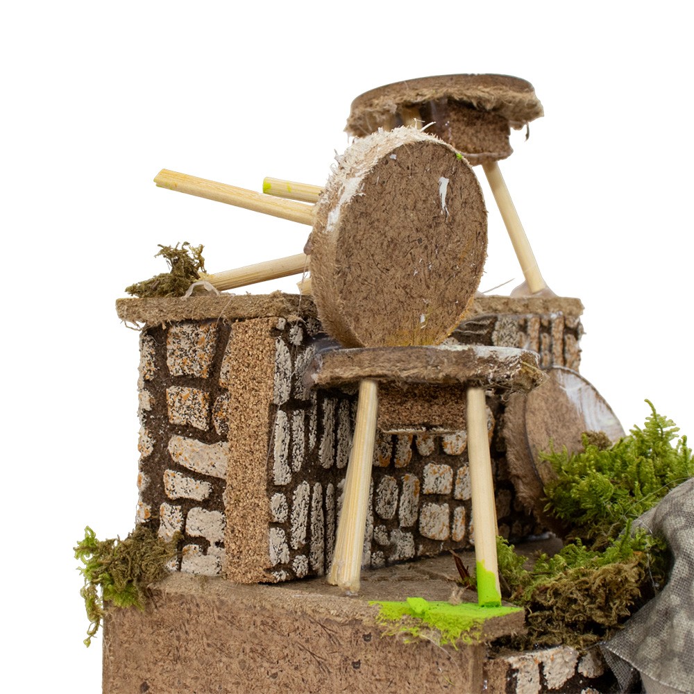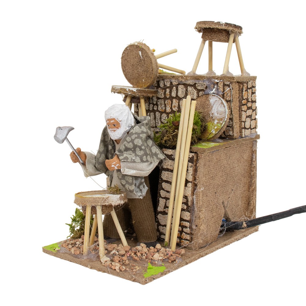 Artigiano, costruttore di sgabelli per il presepe in movimento da 8 cm, dimensioni 14x9 cm x h 17 cm.