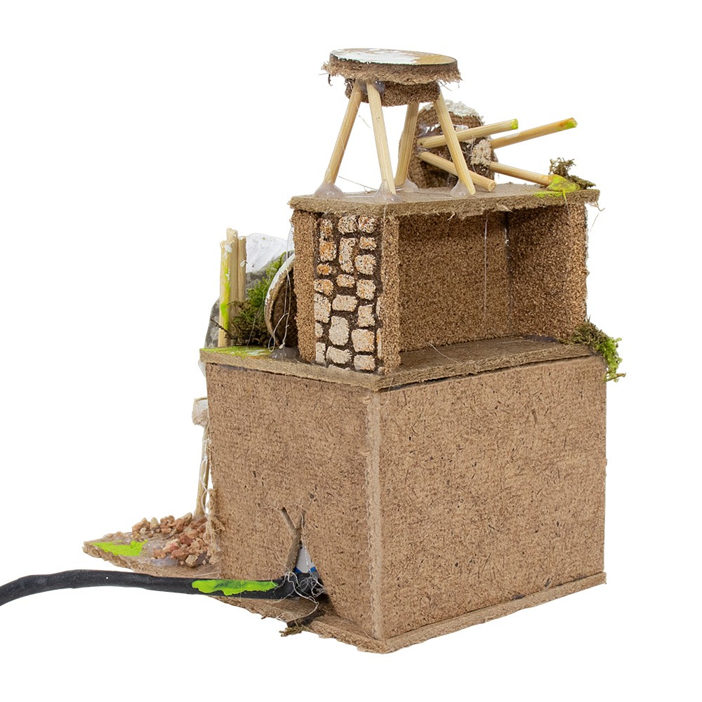 La statuina è realizzata in terracotta, mentre la struttura è in sughero, legno e muschio.
