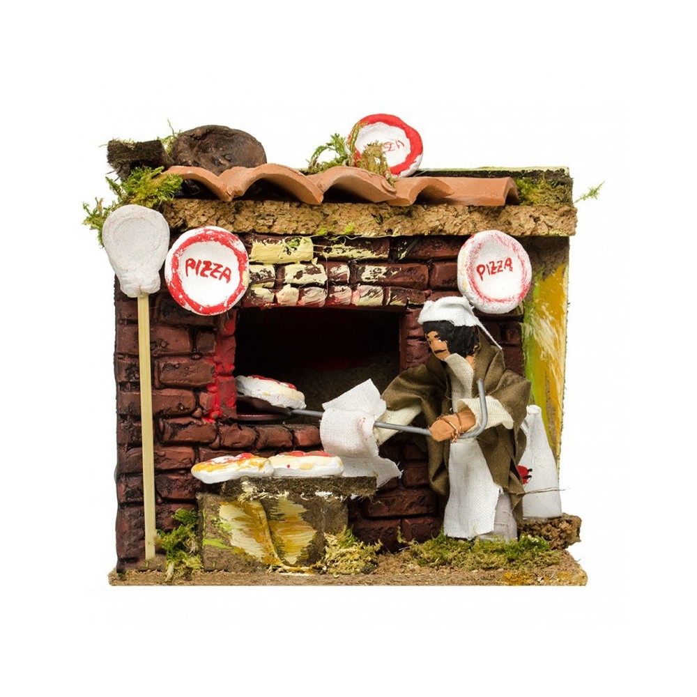 Pizzaiolo con Forno per il Presepe in Movimento. Questo Statuina in terracotta, alto 7 cm, è collegato ad un motorino meccanizzato con spina 220 Volt. Il Forno è in resina e dipinto a mano,