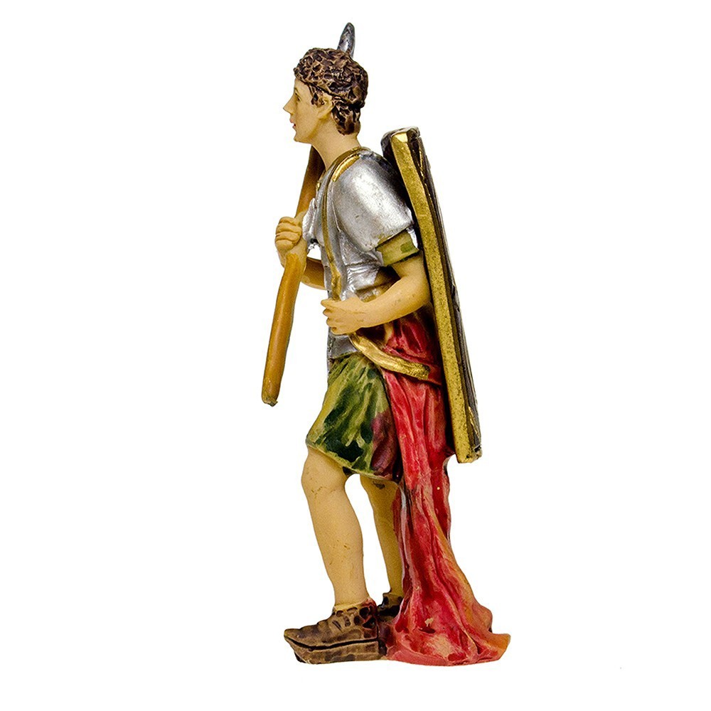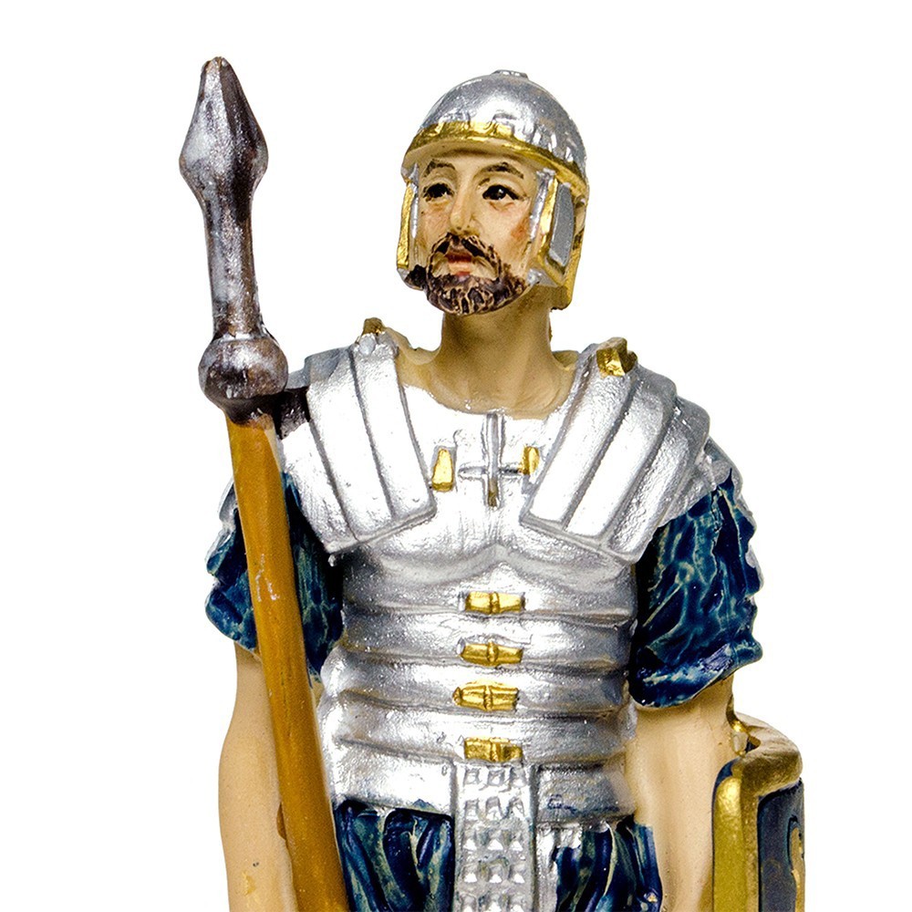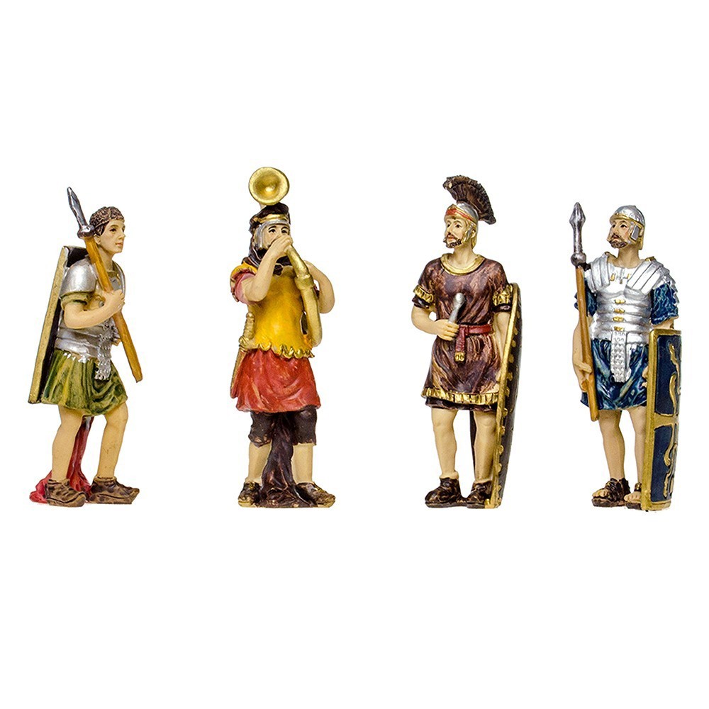 Set 4 figure di soldati per il presepe della Passione. Il gruppo è composto da quattro soldati in piedi, proporzionati al presepe di dimensioni di circa 9 cm.