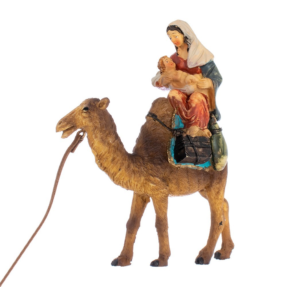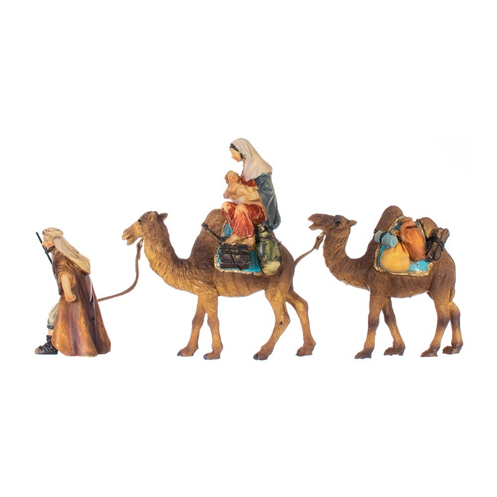 Set 3 figure per presepe: Fuga in Egitto. Il set composto da tre soggetti realizzati in resina sintetica e dipinte a mano, rappresentano la Fuga in Egitto. I personaggi sono proporzionati per presepe da 6 cm.