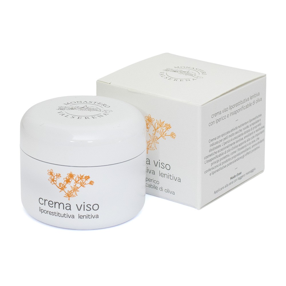 Questa Crema Viso liporestitutiva lenitiva all'iperico prodotta dalle suore del Monastero Trappiste di Valserena è particolarmente ideale per la cosmesi, per pelli secche e disidratate.