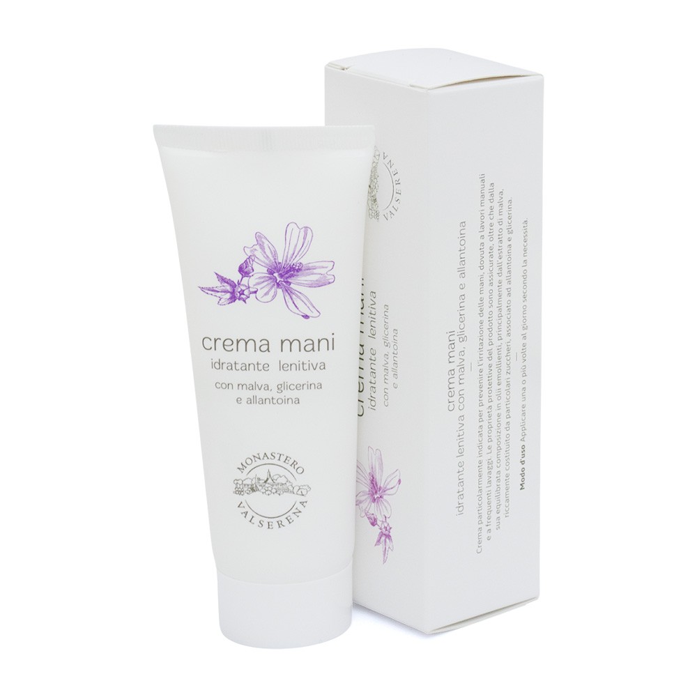 Questa crema mani alla MALVA è prodotta dalle monache del Monastero di Valserena, è particolarmente indicata per prevenire l'irritazione delle mani, dovute ad agenti atmosferici, dall'uso dei detersivi. Si assorbe rapidamente lasciando le mani lisce e morbide.
