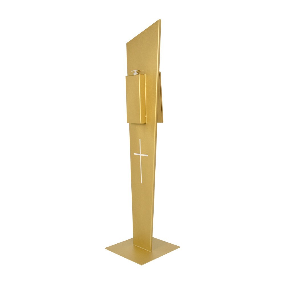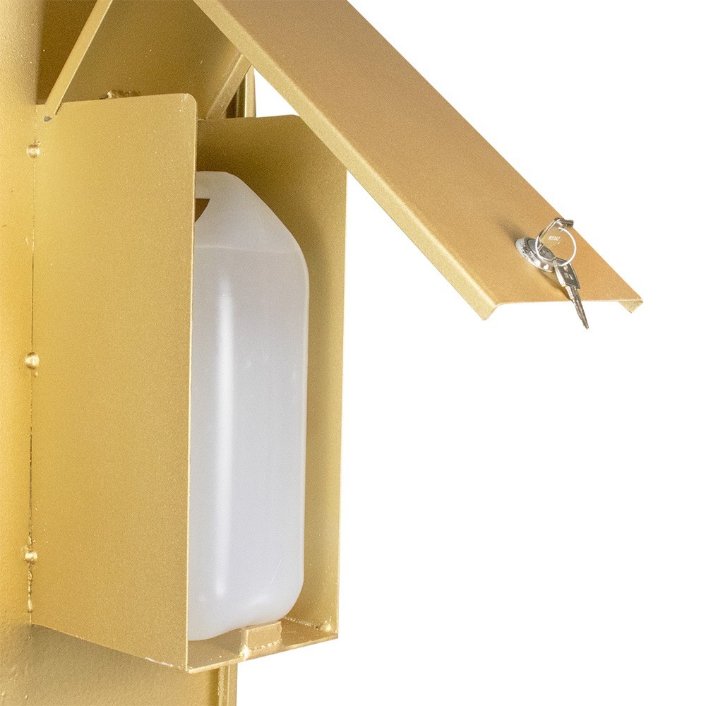 Questo dispenser è realizzato in metallo dorato, adatto al'ingresso di qualsiasi ambiente.