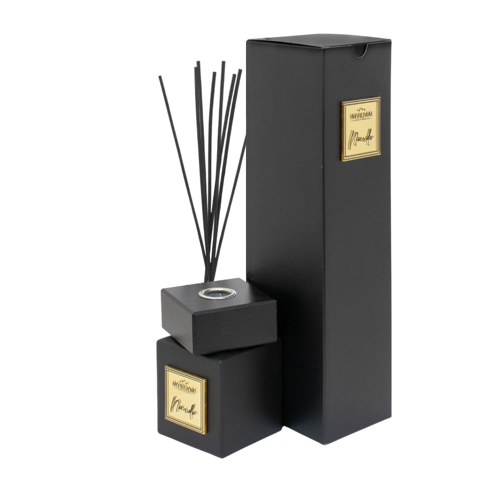 Il diffusore da 250 ml, completo di bastoncini, garantisce una diffusione graduale e costante della fragranza. Il design elegante, con placchetta a specchio color oro con logo Myriam e tappo in legno, rende il prodotto adatto sia come complemento d’arredo sia come idea regalo.