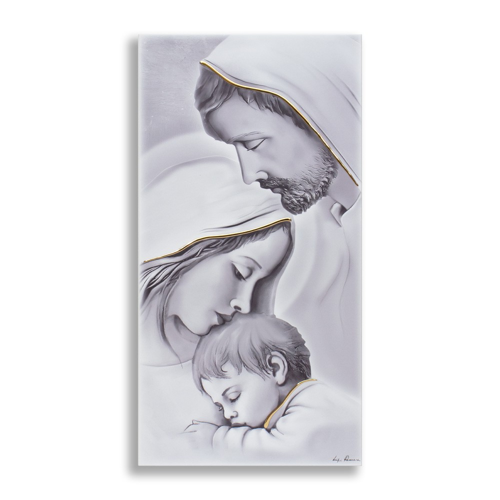 Quadro moderno con immagine della Sacra Famiglia, formato 24x47,5 cm.