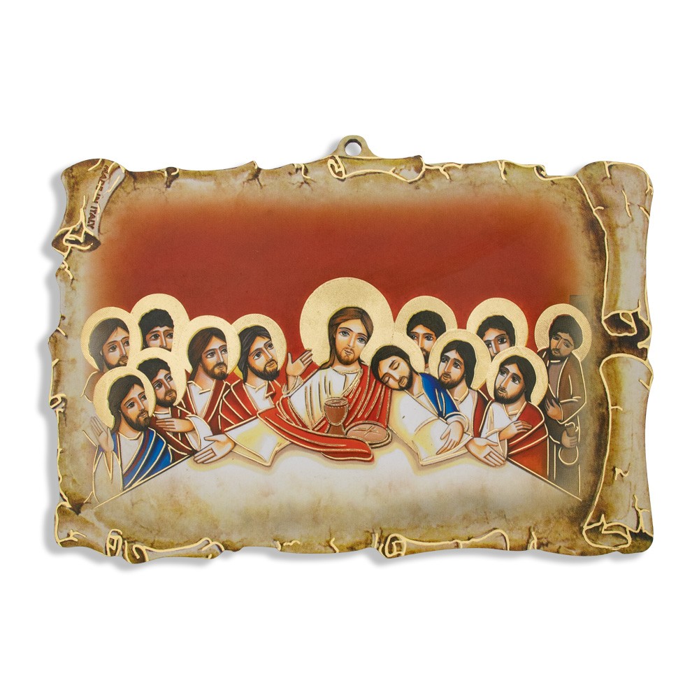 Tavoletta sagomata formato pergamena con immagine raffigurata dell' ULTIMA CENA.