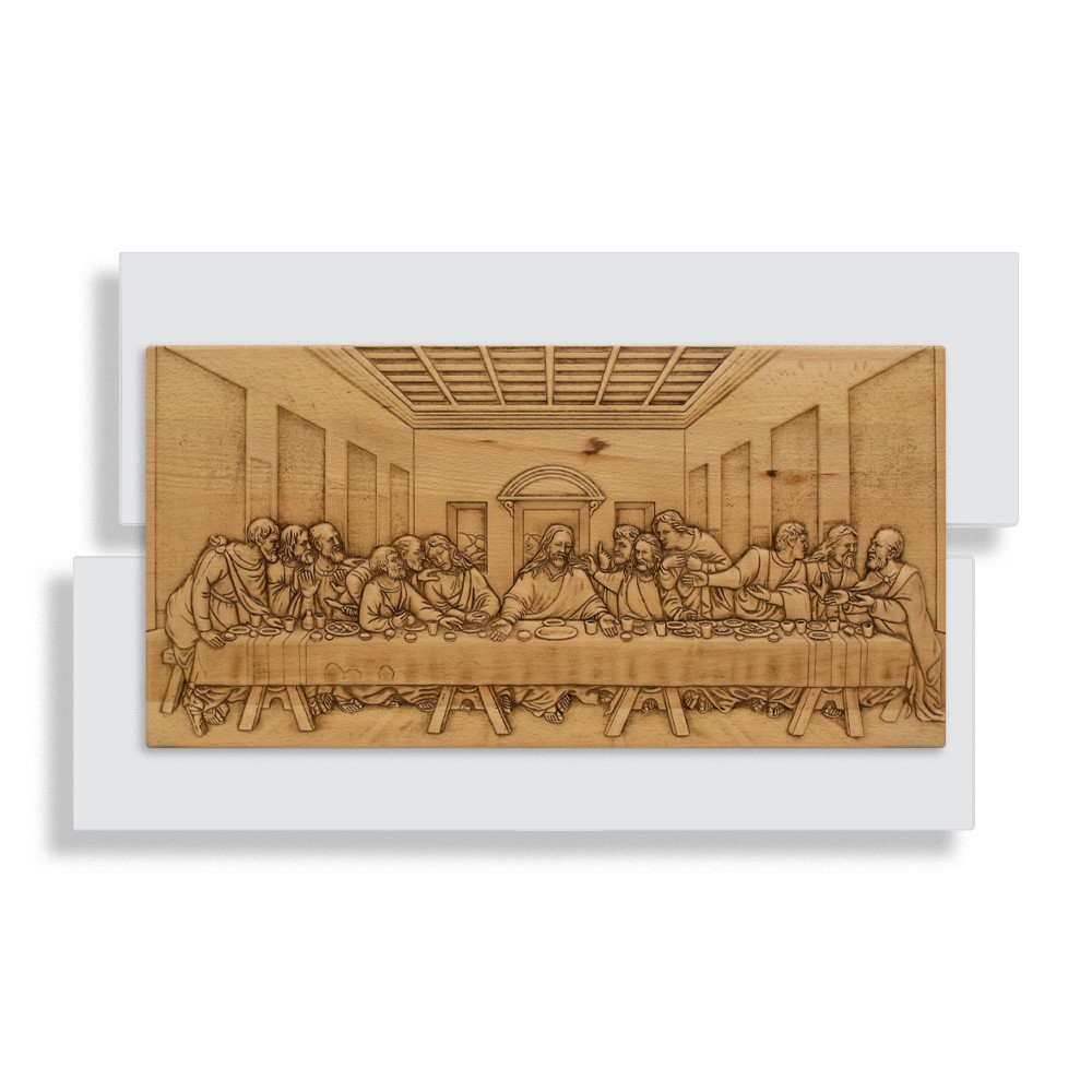 Meraviglioso quadro in legno raffigurante l'Ultima Cena, con supporto di due tavole in legno bianco.