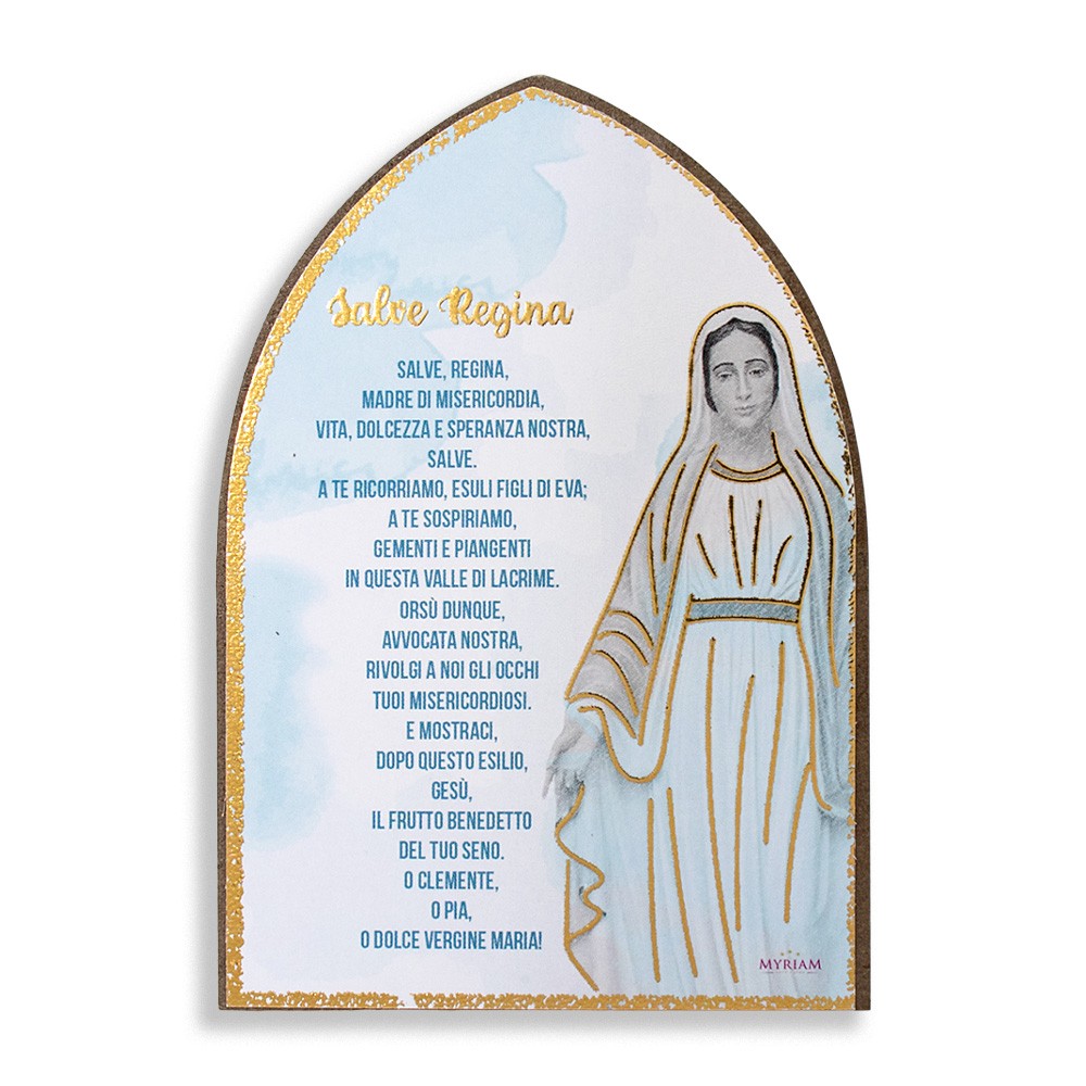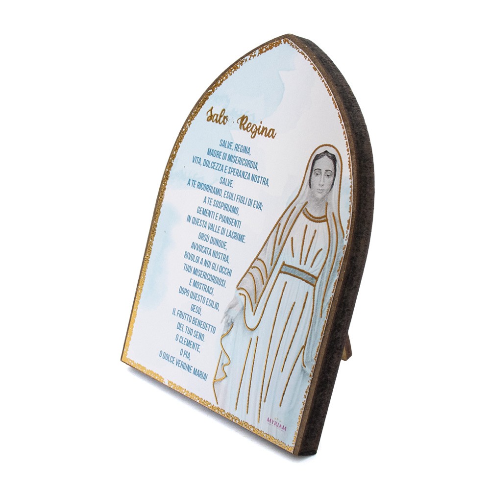 Quadretto Salve Regina, realizzato in MDF a forma di cupoletta.