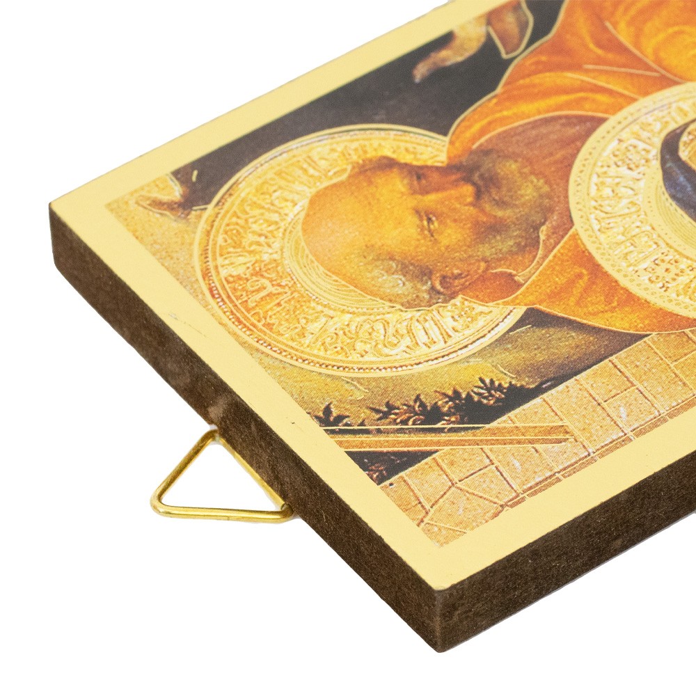 Tavoletta sagomata con immagine stampata della Sacra Famiglia.