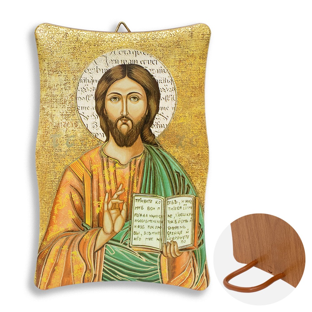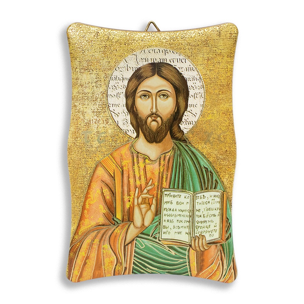 Quadretto di Gesù Pantocratore arricchito con immagine oro a caldo.