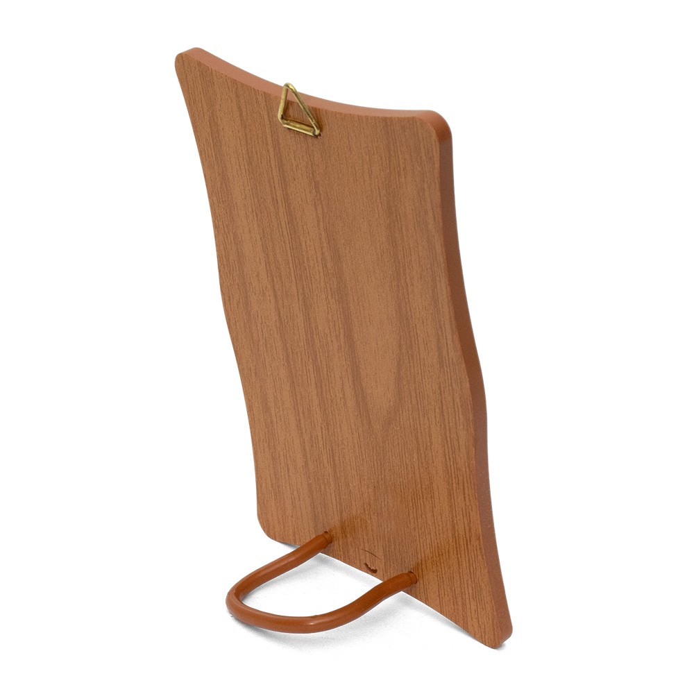 Il quadretto può essere sia appeso alla parete (munito di triangolino in metallo) che d'appoggio (completo di piedino).