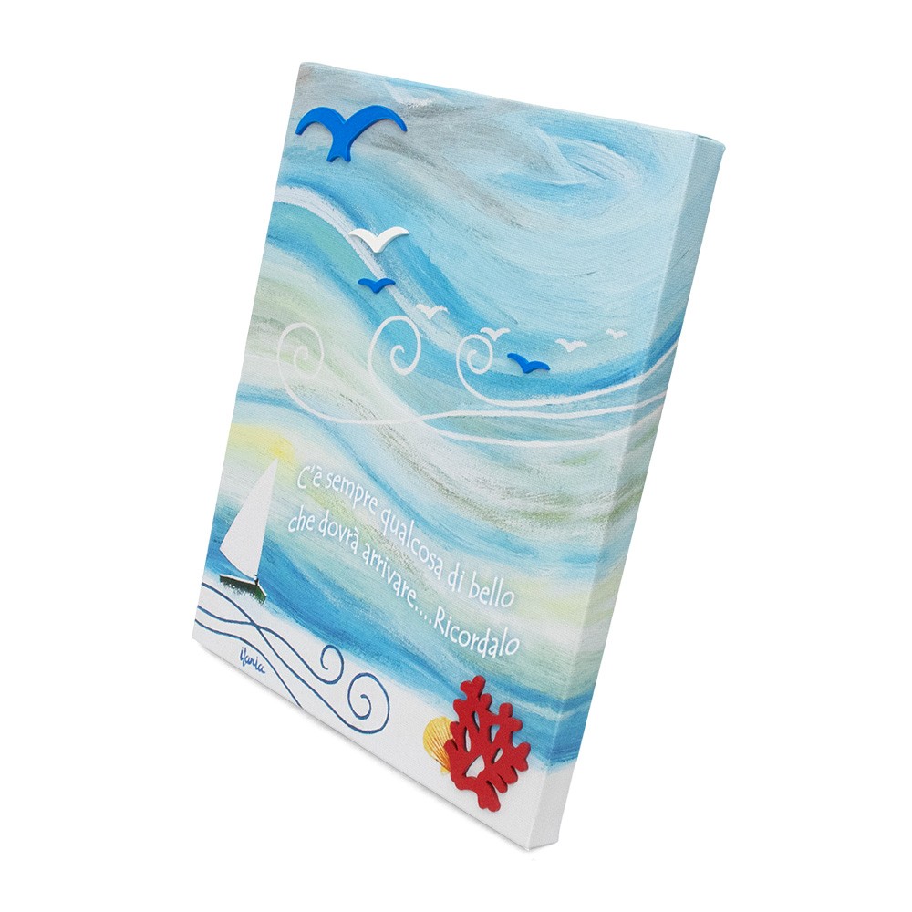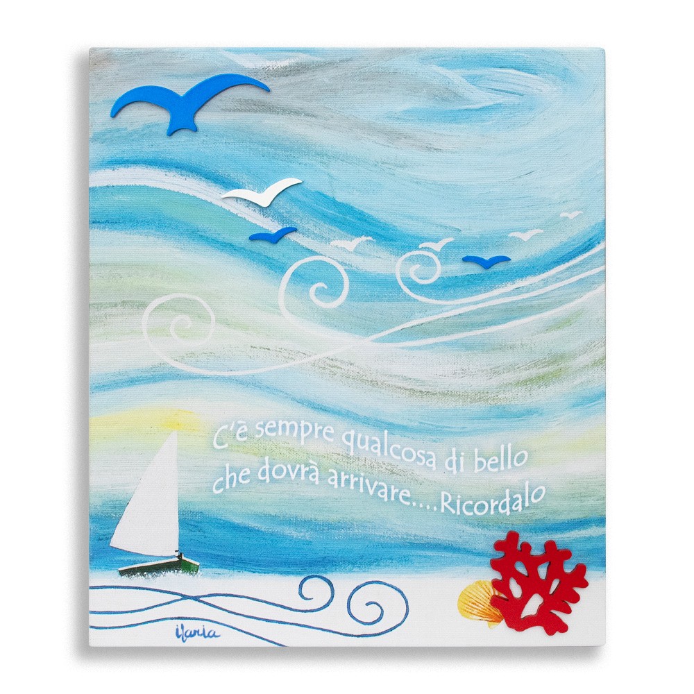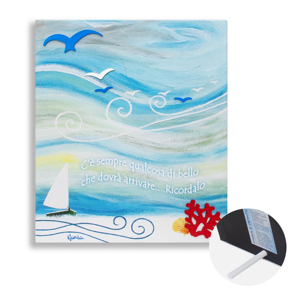 Quadro moderno con stampa su tela "parole dipinte Vela", ideato da una giovane pittrice marchigiana.
