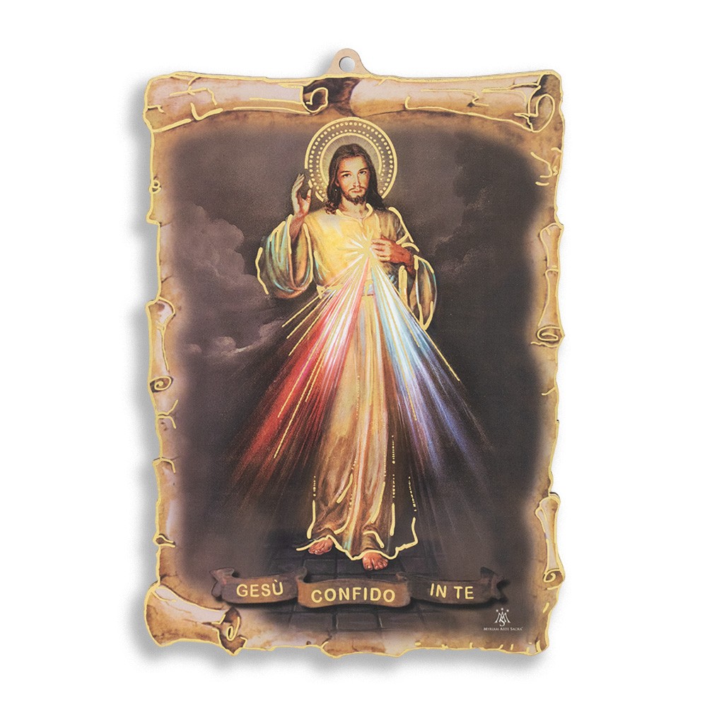 Quadretto pergamena con immagine di Gesù Misericordioso.