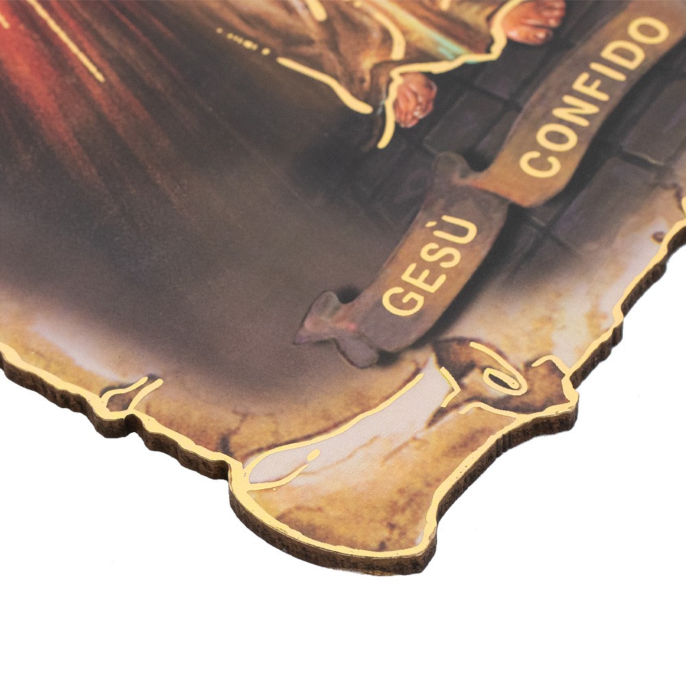 Il quadretto è realizzato in fibra di legno MDF a forma di pergamena impreziosito con decori in oro a caldo.