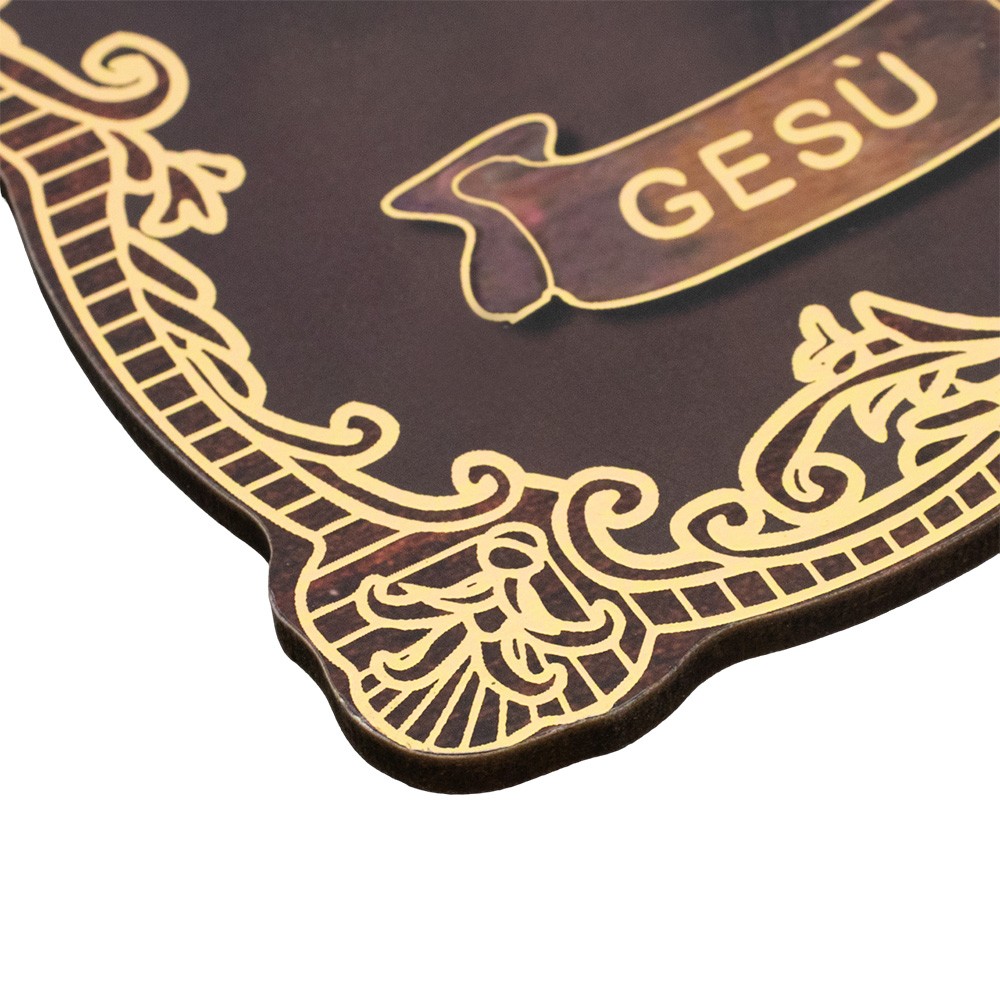 Il quadretto è realizzato in fibra di legno MDF impreziosito con decori dorati.