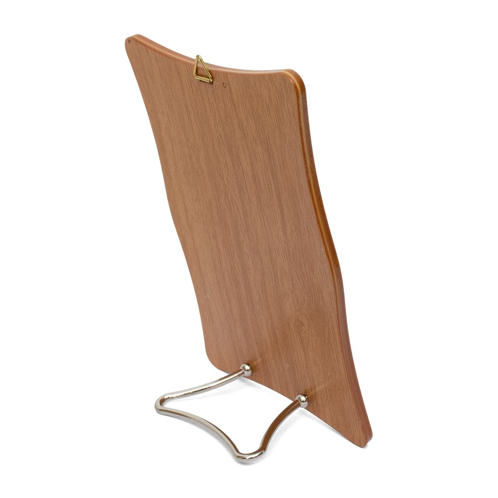 Il quadretto è alto circa 15 cm ed è largo circa 9,5 cm, completo sia di triangolino in metallo per essere appeso e di piedino per essere appoggiato.
