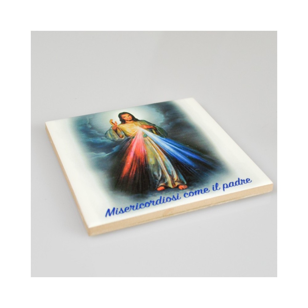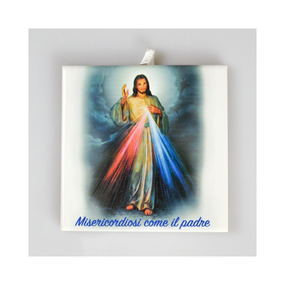 Tavoletta o quadretto da appendere con immagine raffigurata di Gesù Misericordioso realizzato in ceramica.