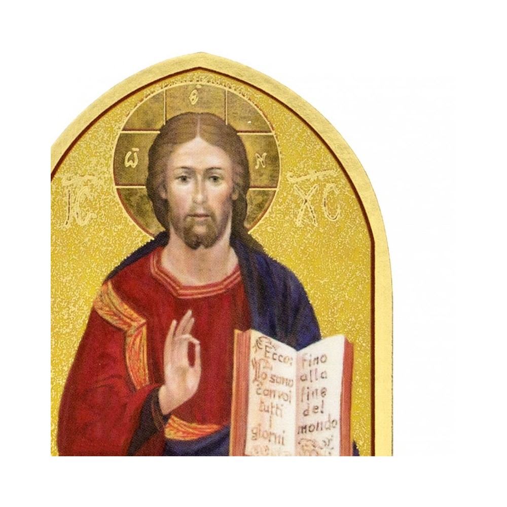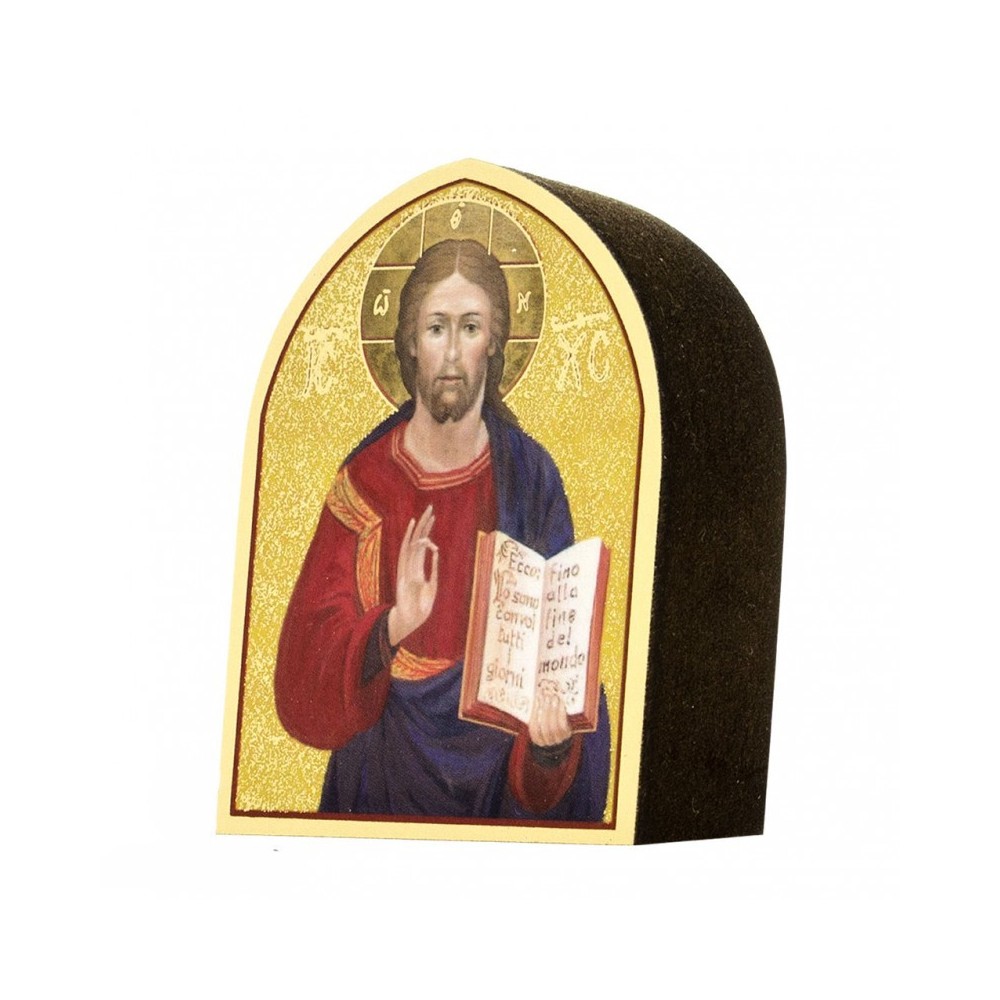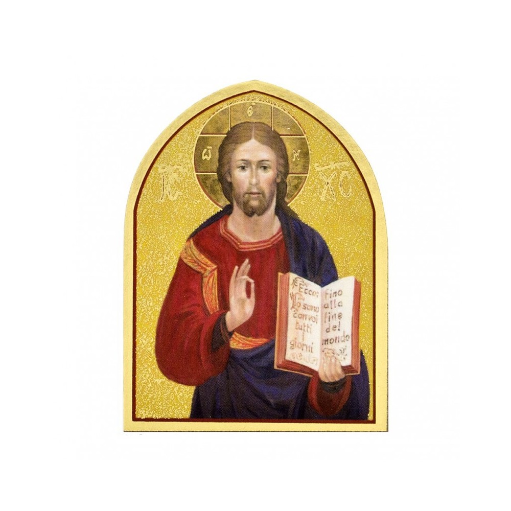 Quadro Cristo libro aperto, in legno con stampa oro a caldo. Il quadretto si presenta a foma di cupola, alto 7,5 cm e largo 5,5 cm. Prodotto made in Italy. Confezionato in elegante scatola.