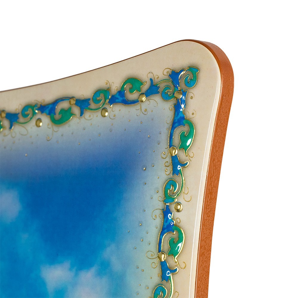 Quadro della Madonna del Soccorso detta anche "Madonna Nera" patrona della città di San Severo. Questo quadro di forma sagomata è realizzato in polimero effetto lucido e cornice decorata a rilievo. Completo di gancino in metallo per essere appeso. Made in Italy.