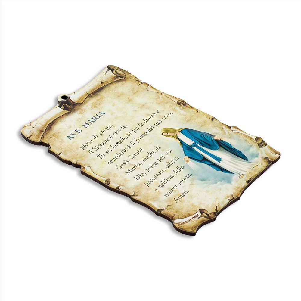 Tavoletta a forma di pergamena con preghiera Ave Maria.