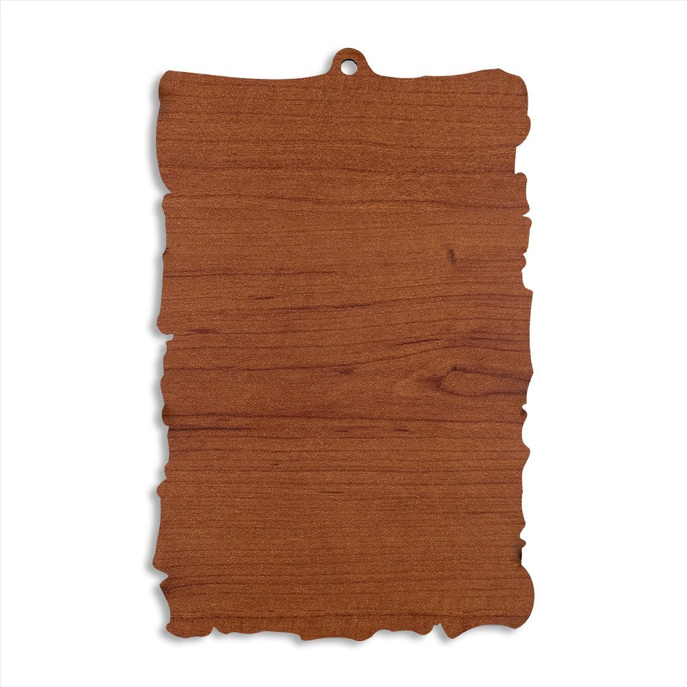 Quadretto in legno sagomato tipo pergamena con immagine stampata della Sacra Famiglia. Completo di foro per essere appeso.