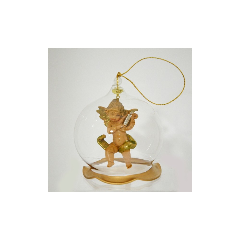 Campana in vetro soffiato da appendere con Angelo musicante. Ornamento corredato da scatola litografata.