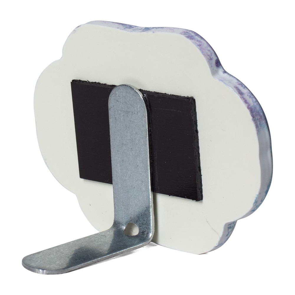 Realizzato in resina con piedino in metallo che se piegato lo rende da appoggio.