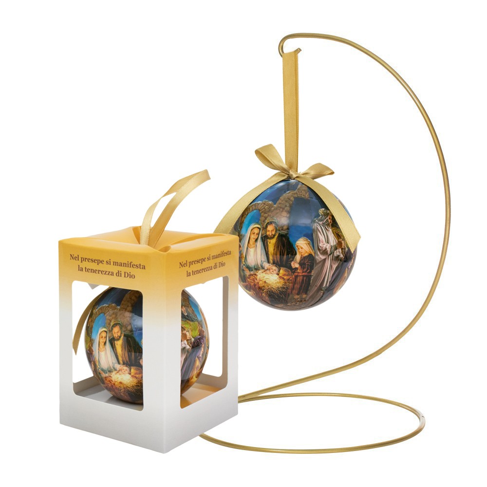 Palla natalizia diametro 7,5 cm, con scatola decorata.