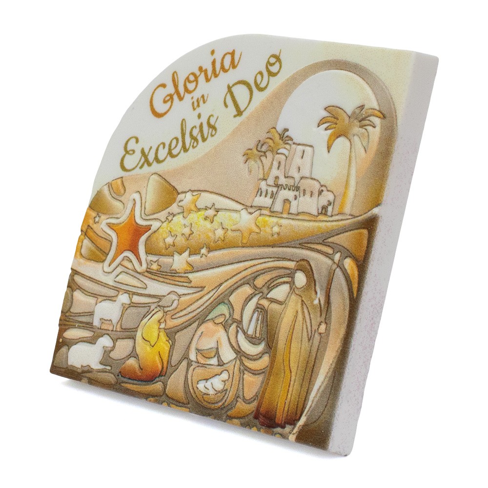 Sul fronte del magnete vi è decorata una natività in rilievo.