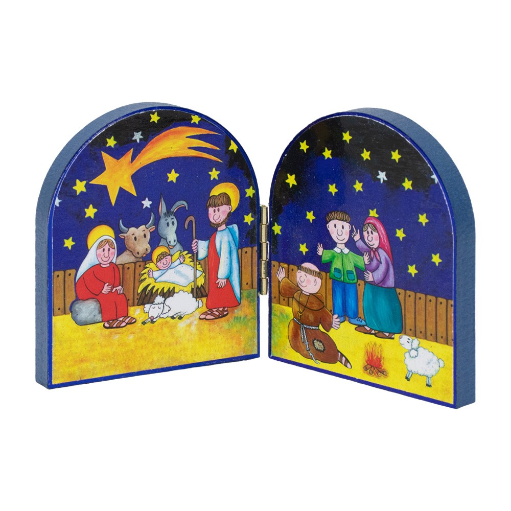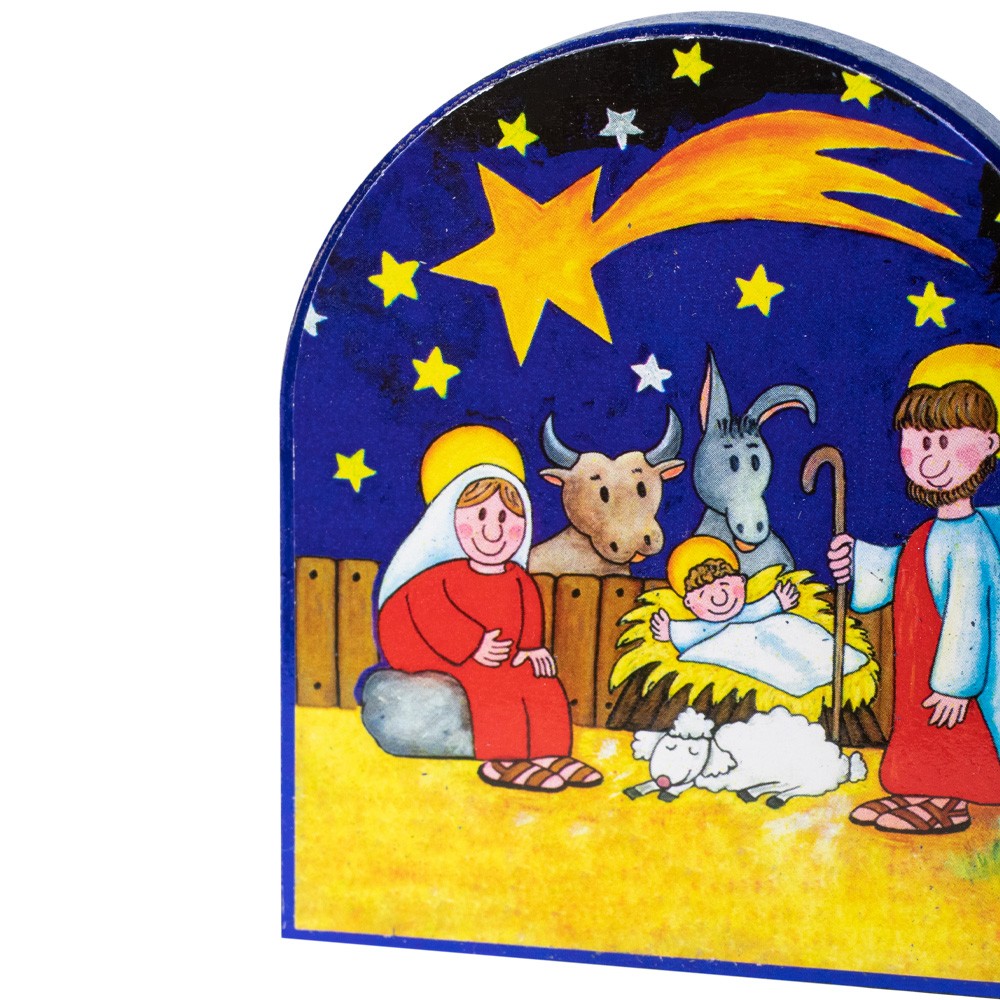 Il quadretto è interamente in legno MDF, con decoro Natività.