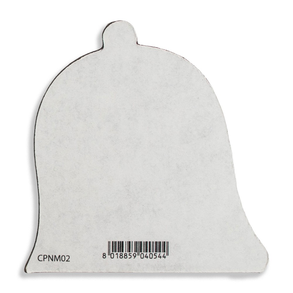 Calamita natalizia resinata a forma di mini campana con immagine stampata della natività.