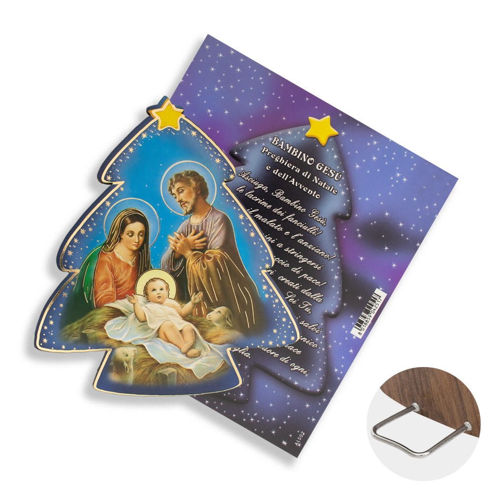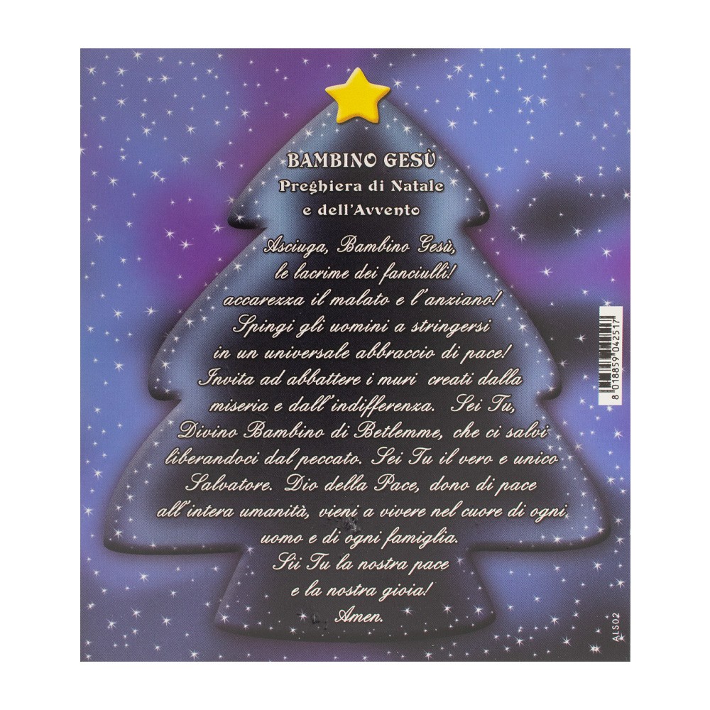 Articolo di ottima lavorazione artigianale italiana, completo di piedino in metallo e cartoncino decorato con preghiera di natale e dell'avvento, il tutto racchiuso in bustina trasparente.