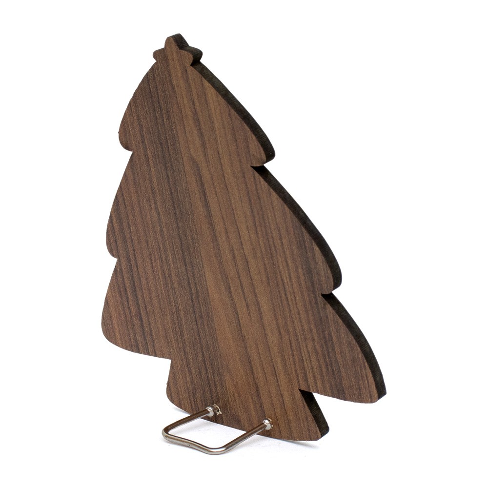 Quadretto da appoggio realizzato in legno MDF sagomato a forma di albero natalizio e immagine stampata della Natività.