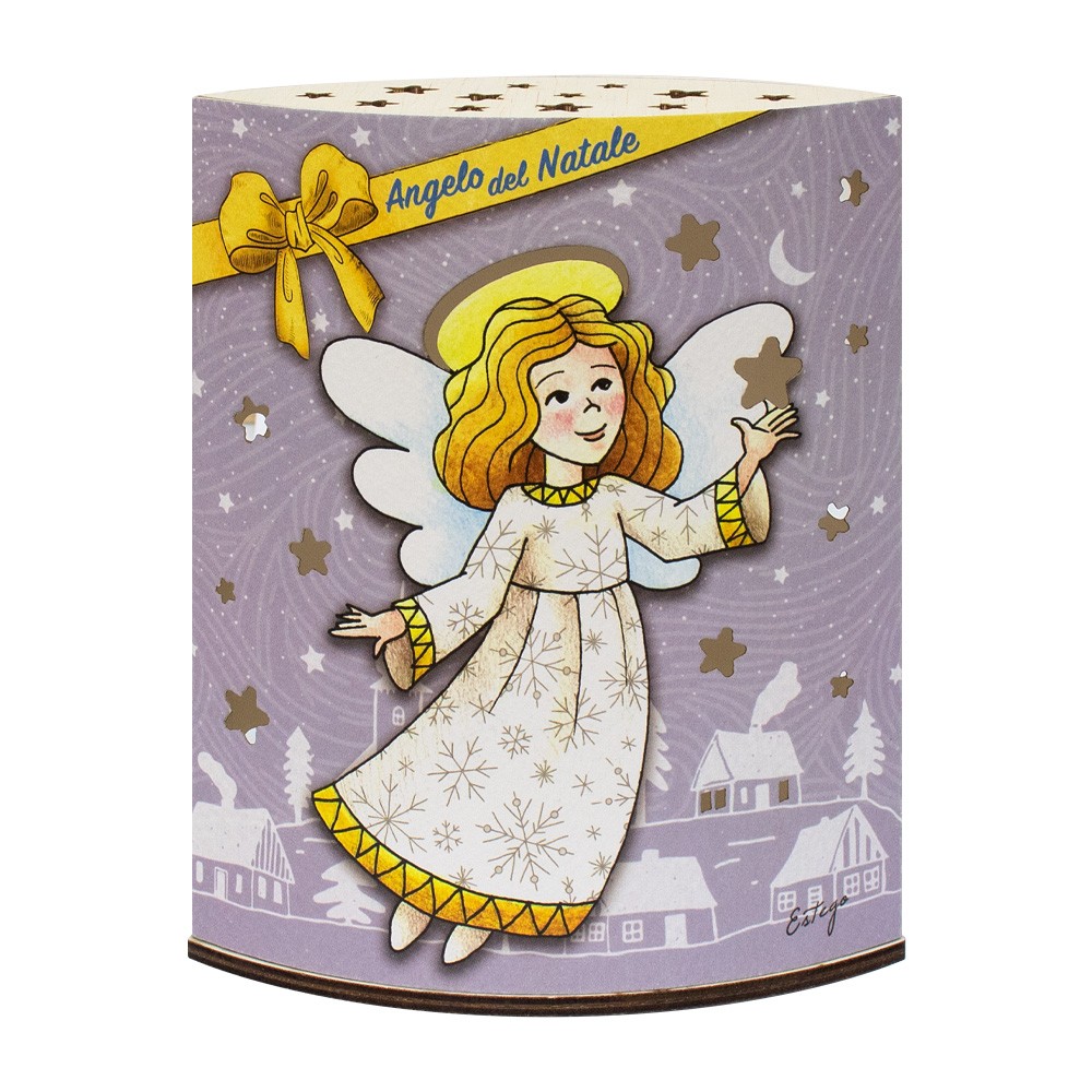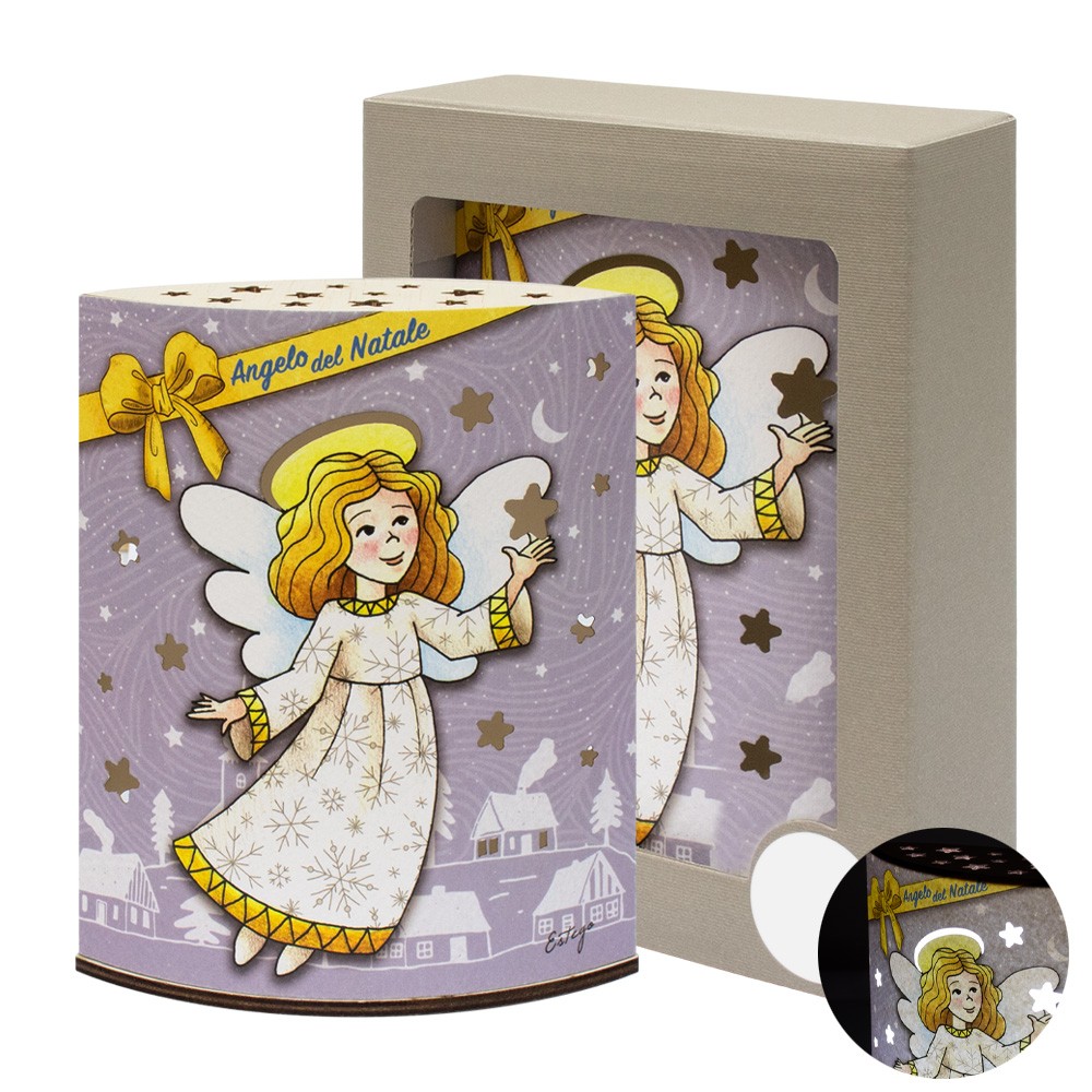 Lampada natalizia con immagine raffigurata dell'Angelo del Natale. Alimentata a batteria con luce soffusa.