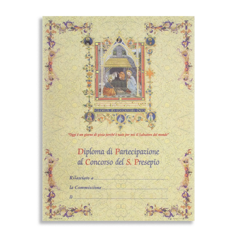 Ricordo diploma di partecipazione al concorso del Santo Presepe.