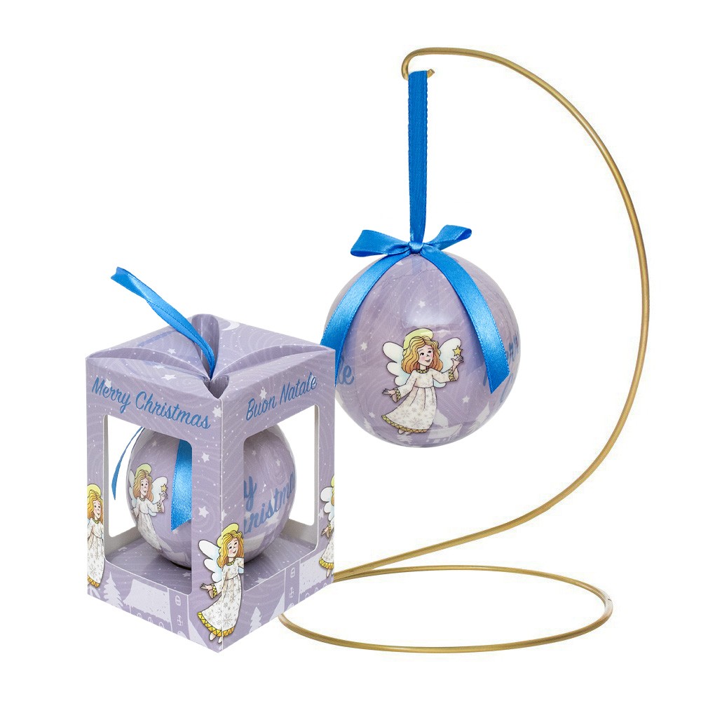 Questa graziosa palla natalizia è decorata con immagine raffigurata di un angioletto e scritta "Merry Christmas", perfetta per arricchire il tuo albero di un tocco di magia natalizia, ma anche come idea regalo.