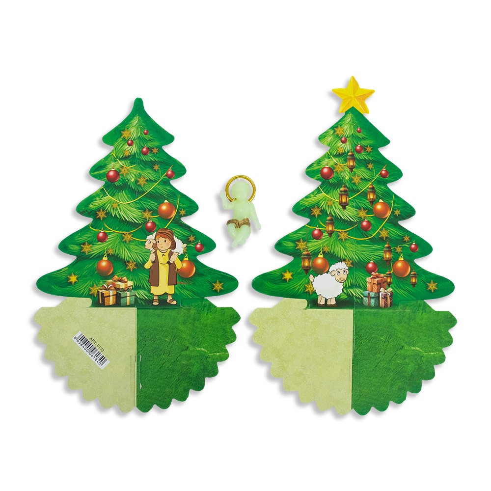Alberello componile completo di Gesù Bambino in plastica fluorescente.