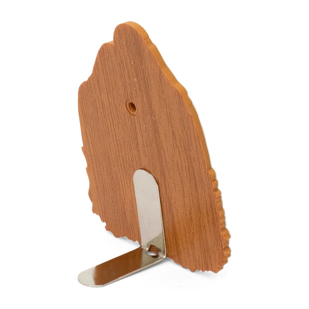 Il magnete è realizzato in polimero materiale resistente, grazie al pratico sostegno in metallo, può essere trasformtao in un mini quadretto d'appoggio.
