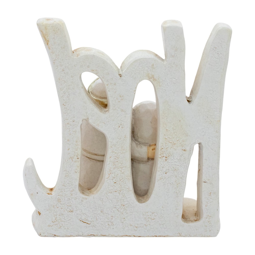 Mini Natività con base e scritta NOEL, realizzata interamente in resina e dipinta a mano con cura.