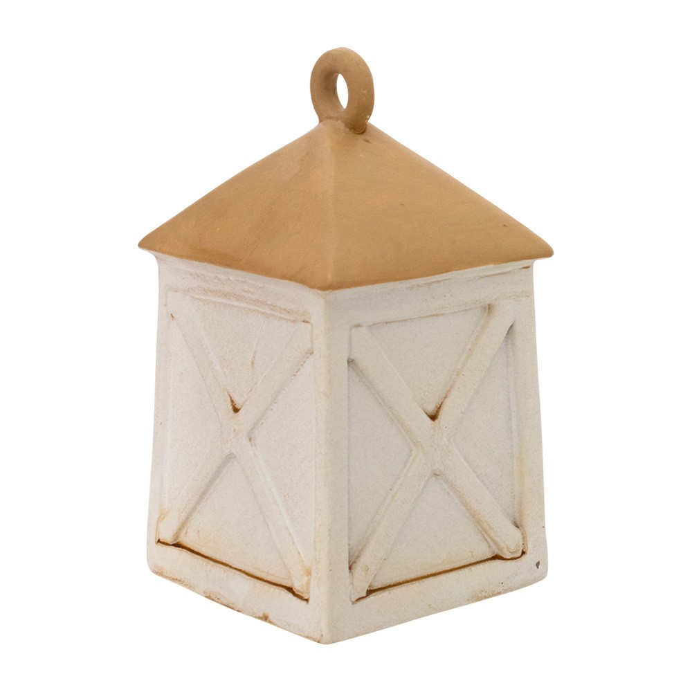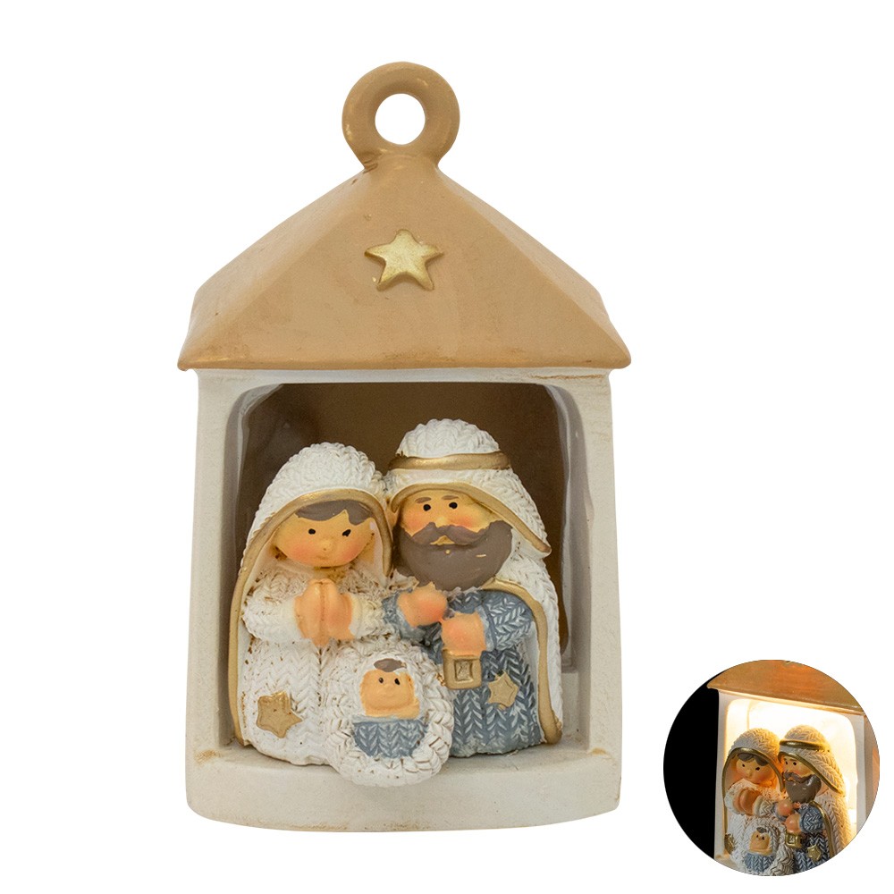 Lanterna in resina dipinta con Natività e luce led.