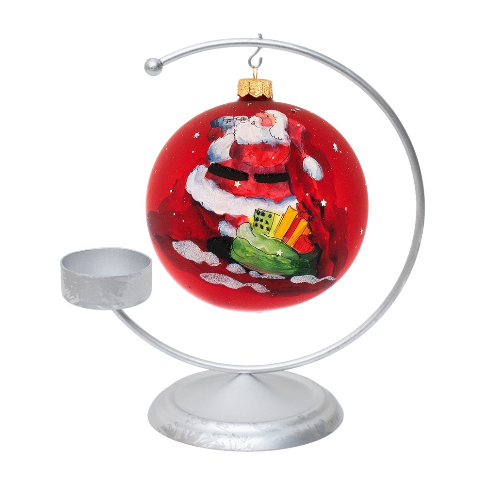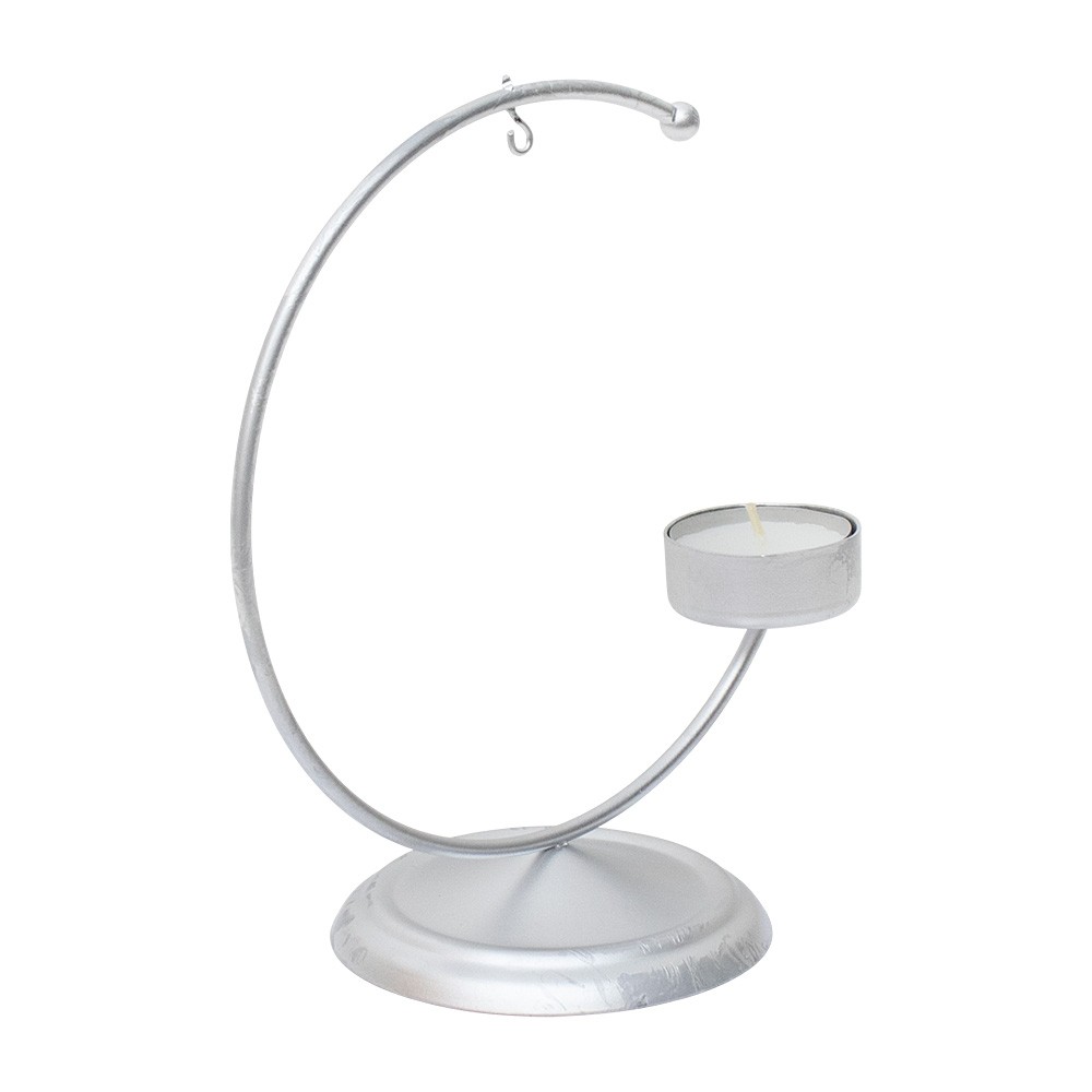 Il supporto è caratterizzato da una struttura leggera e solida, ben bilanciata, con una base dal diametro di 9 cm, un'altezza complessiva di 18 cm e una larghezza di 15 cm. La sua finitura argentata si integra perfettamente in ogni contesto decorativo, conferendo un aspetto luminoso e festoso.