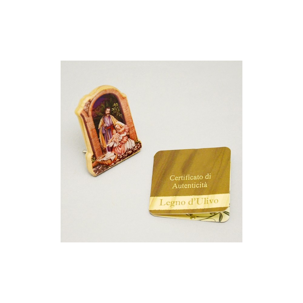 Presepe realizzato in Legno di Ulivo Modello Arco con piedino d'appoggio in metallo. L'immagine e' applicata al legno con colori intensi e vivi. Idea regalo di ottima qualità. Corredata di scatola trasparente. Made in Italy.