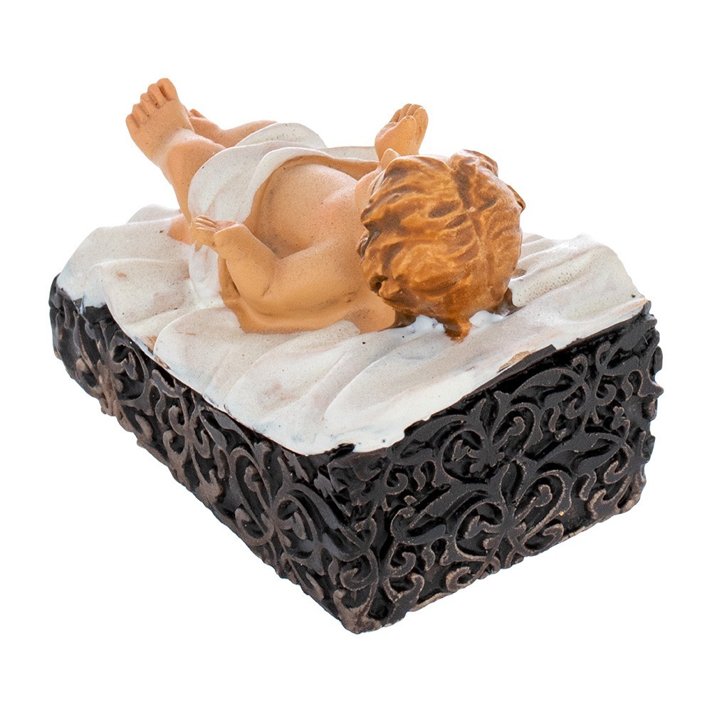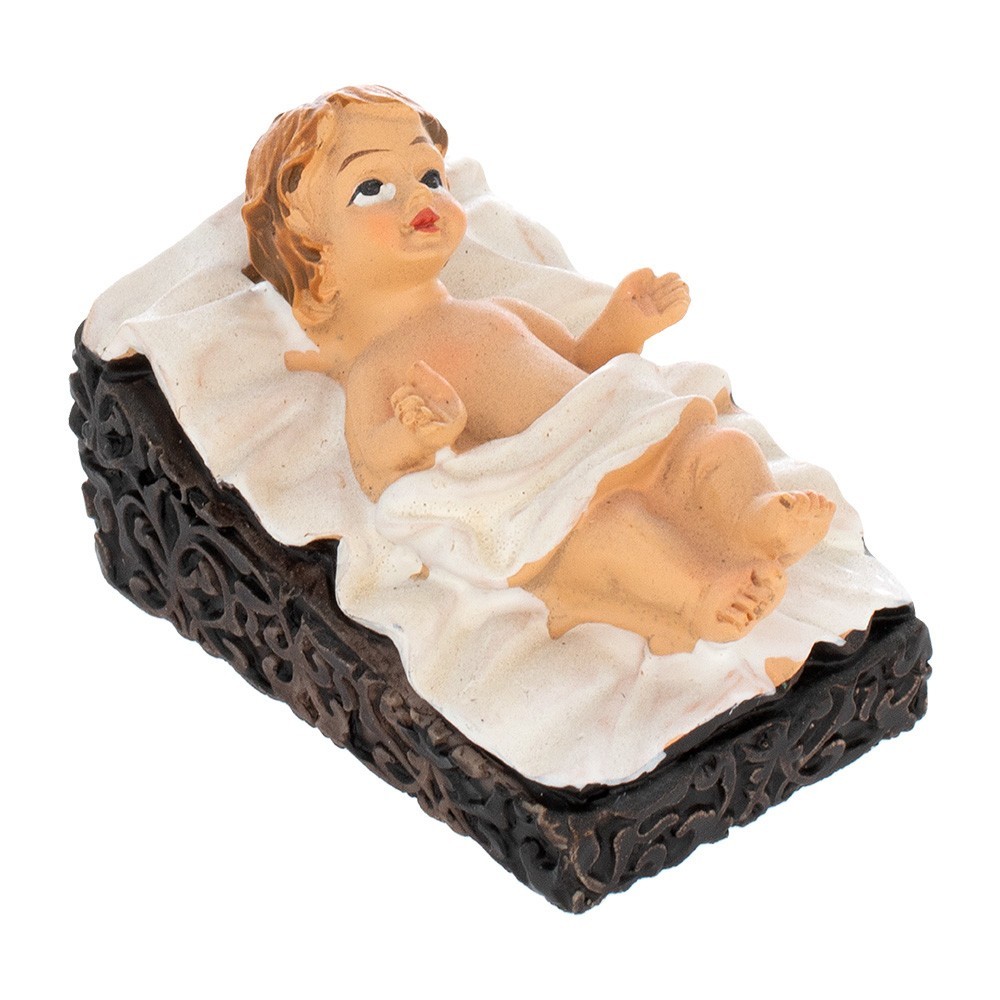 Gesù Bambino con culletta in resina. Articolo 100% italiano.