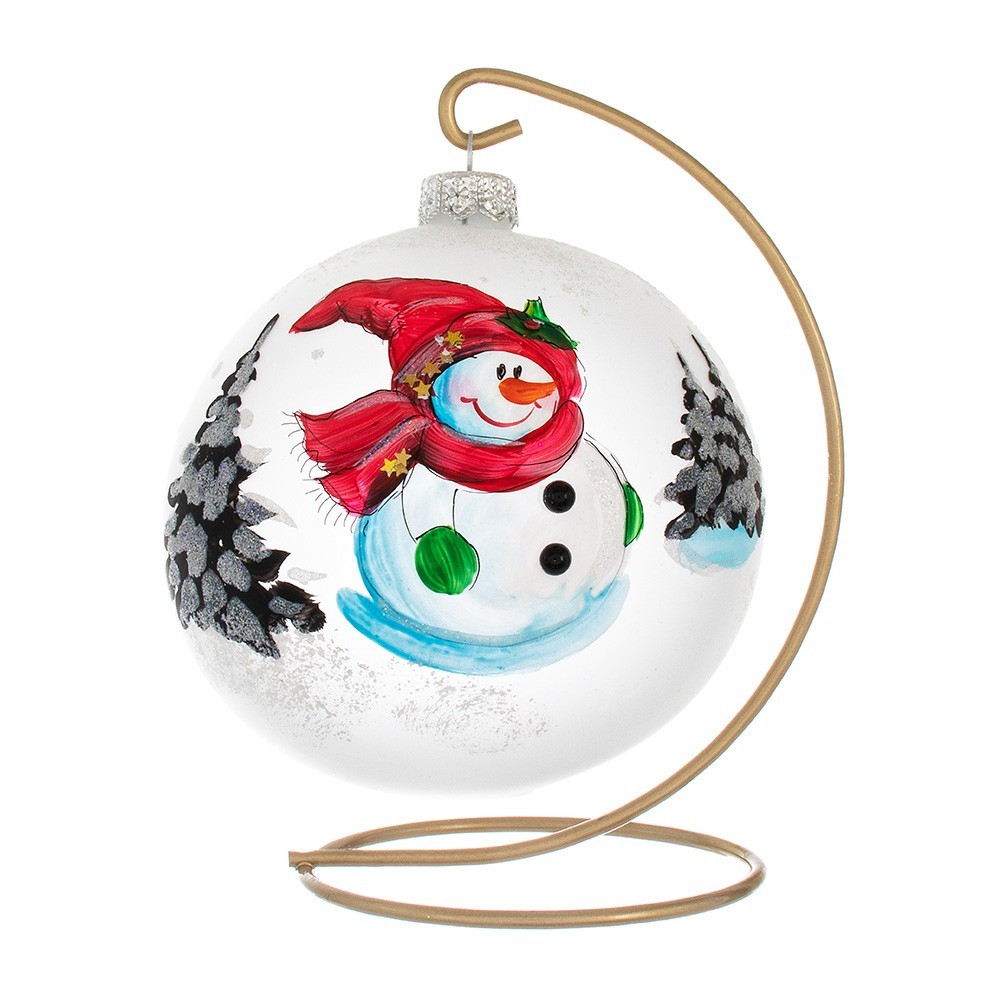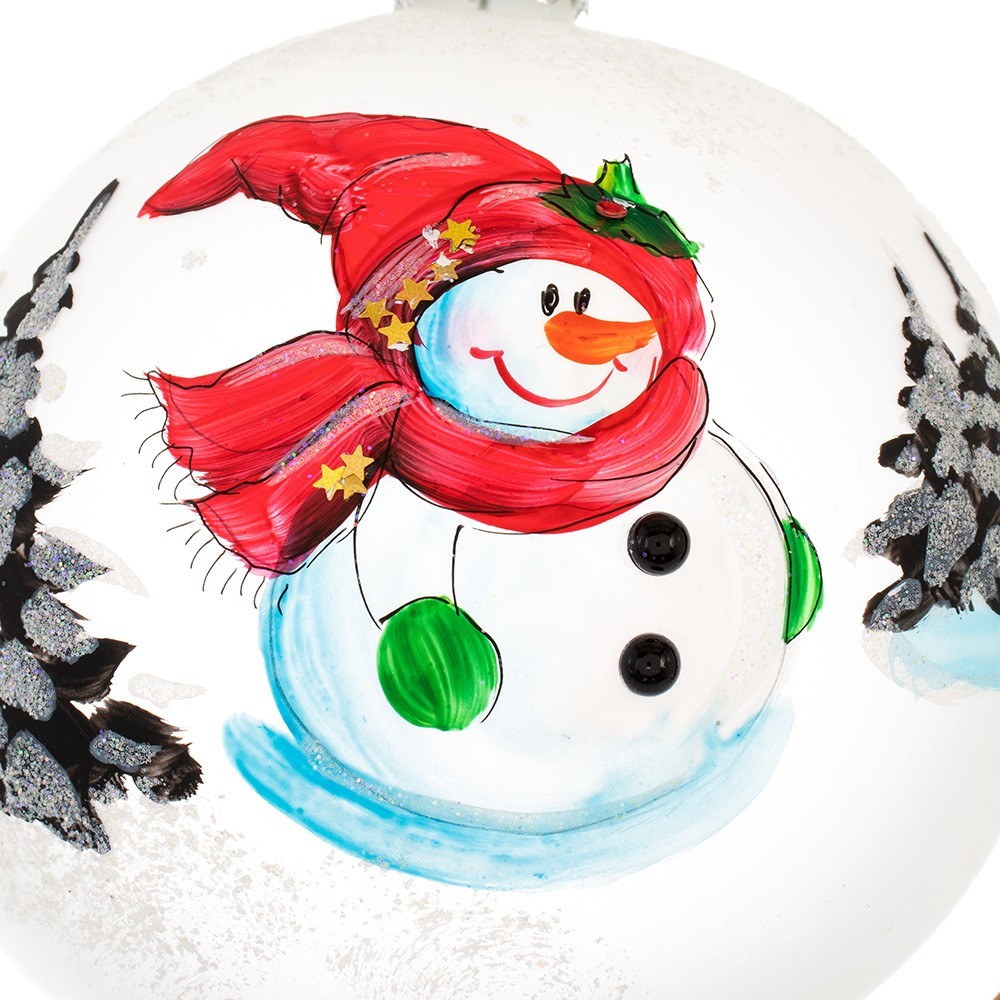 Pallina Natalizia in vetro soffiato satinato. Elegante addobbo, ideale per arredare la propria casa o per l'albero di Natale. Dipinta interamente a mano e arricchita con glitter argento, stelline dorate e perline nere. Ottima idea regalo. Corredata di scatola.