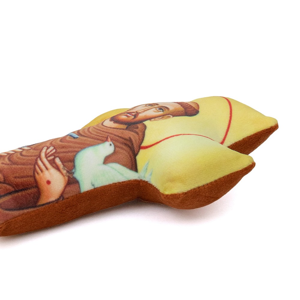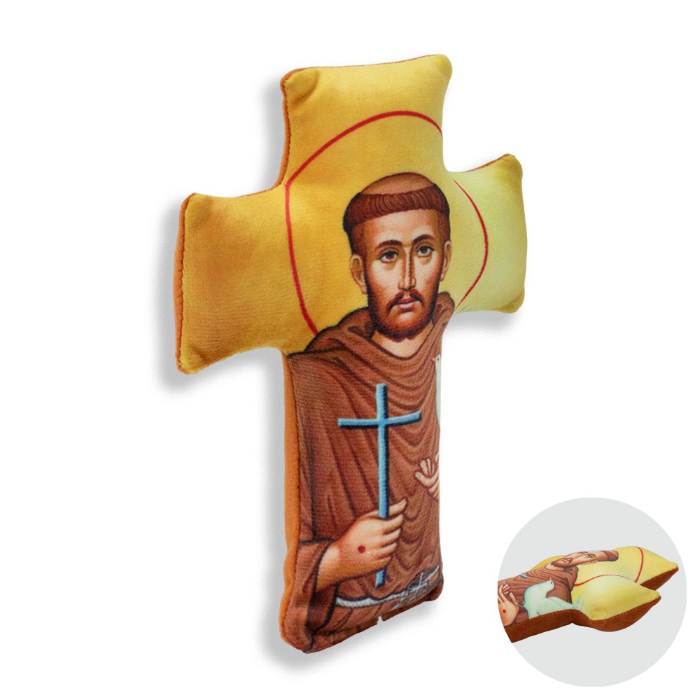 Cuscino con immagine di San Francesco a forma di croce, collezione STRINGILA.