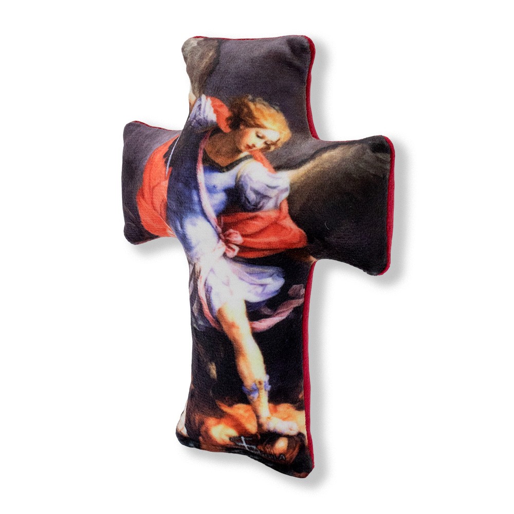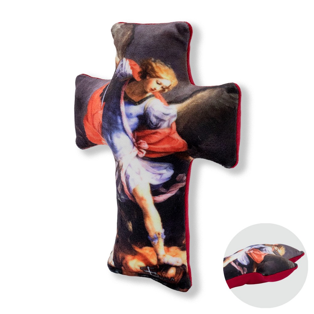 Cuscino croce con imbottitura e immagine raffigurata di San Michele Arcangelo, collezione STRINGILA.
