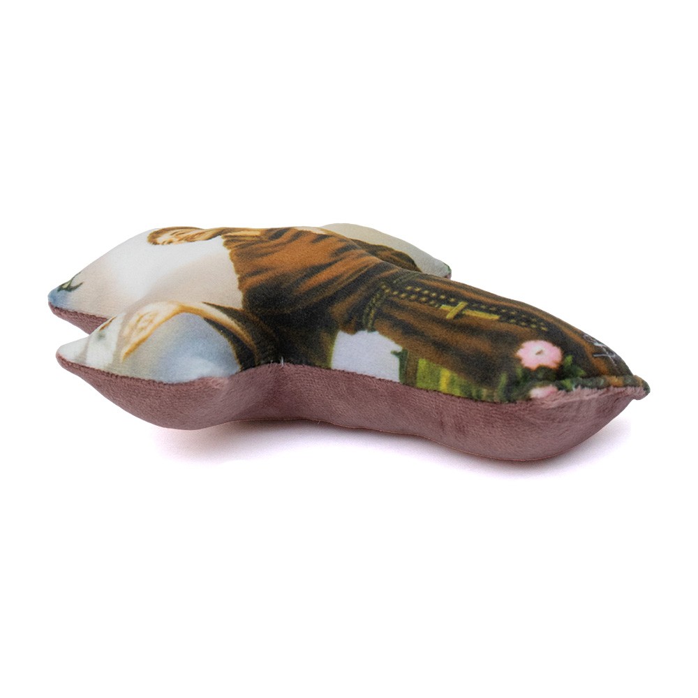Croce Cuscino in velluto completo di imbottitura sintetica e arricchito con immagine sul fronte di San Francesco d'Assisi.